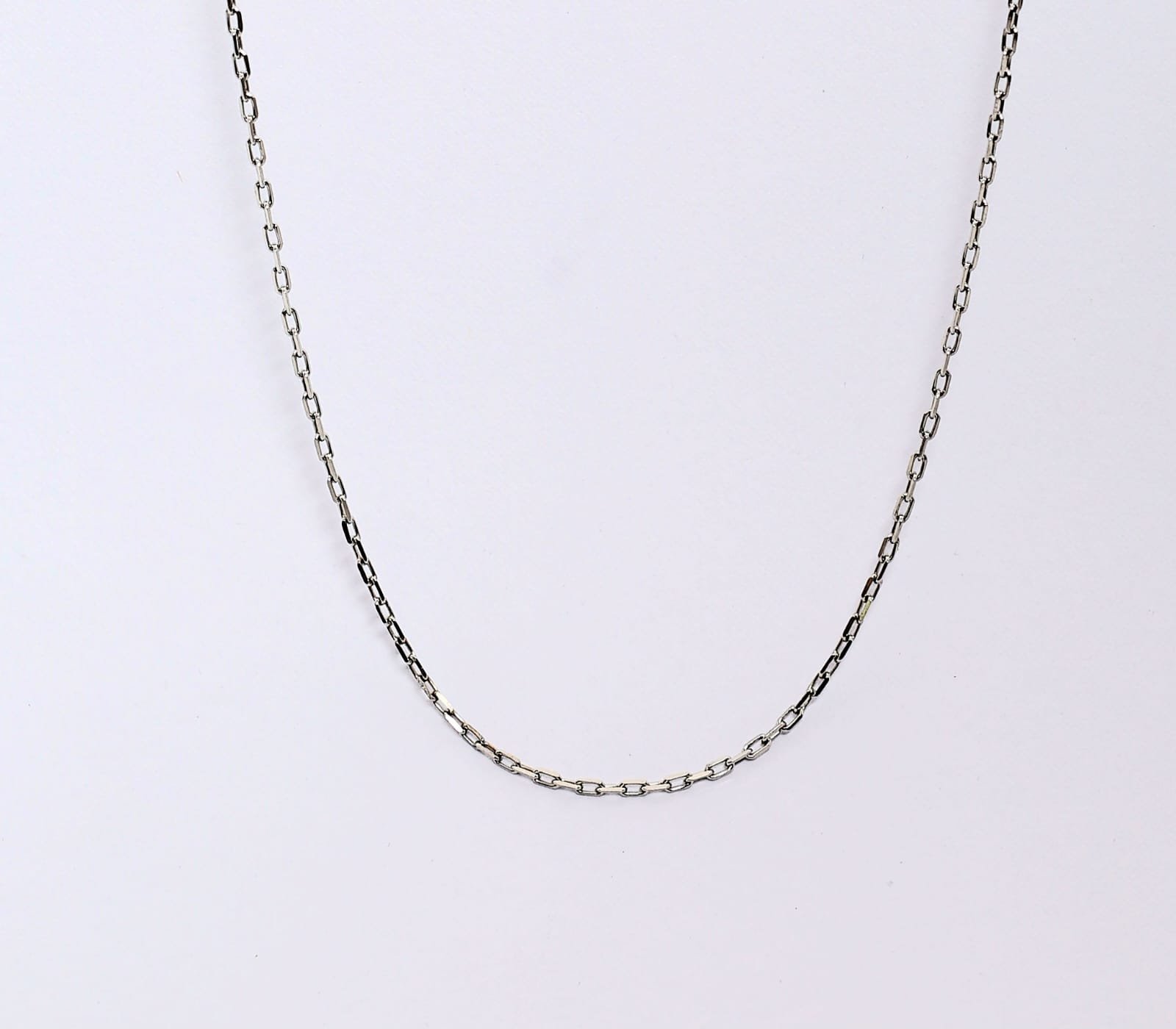 Designed with refined elongated rectangular links, this chain offers a modern yet classic appeal. Its clean and minimal structure makes it perfect to wear alone for a subtle statement or pair with a pendant for a personalized style.