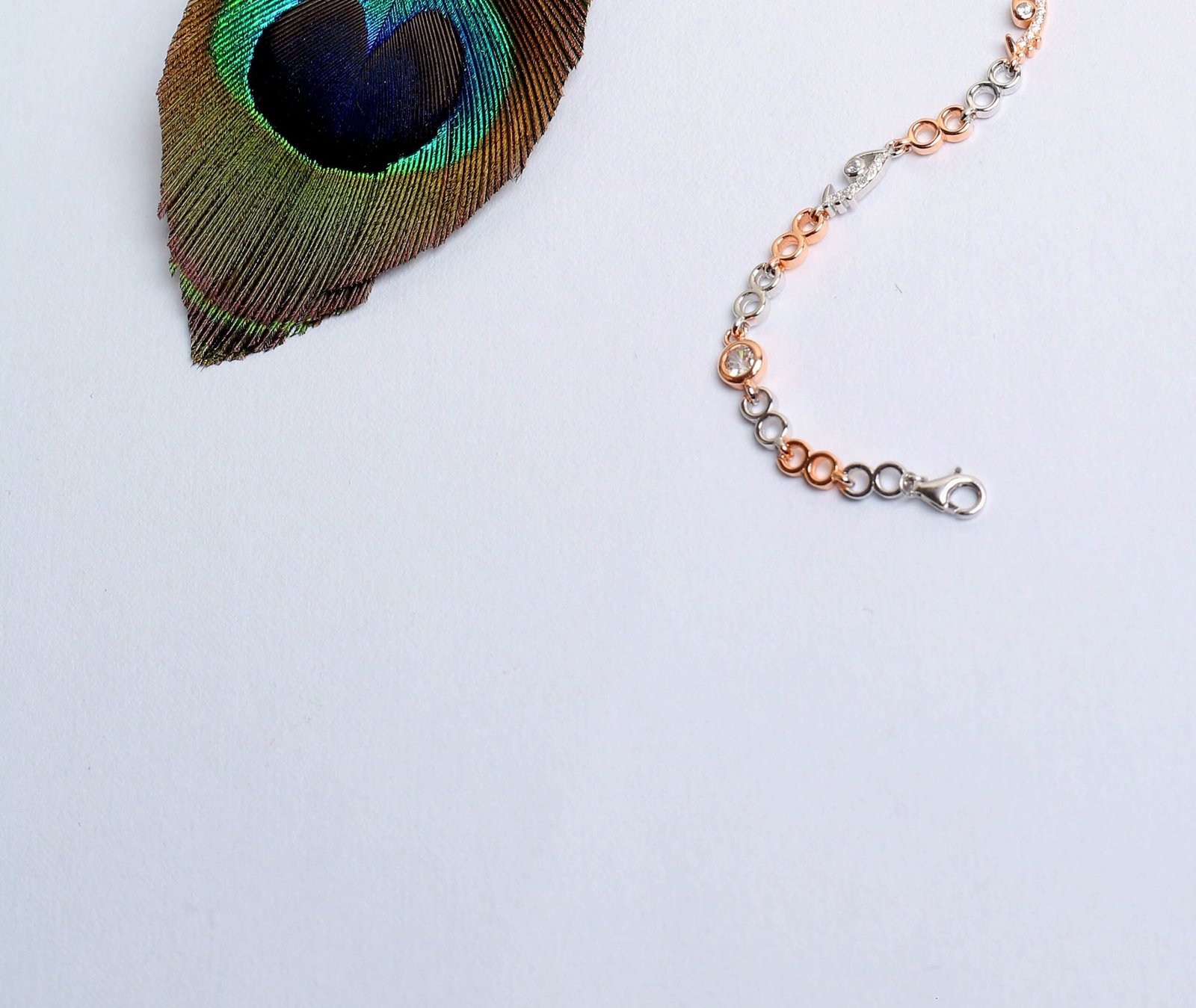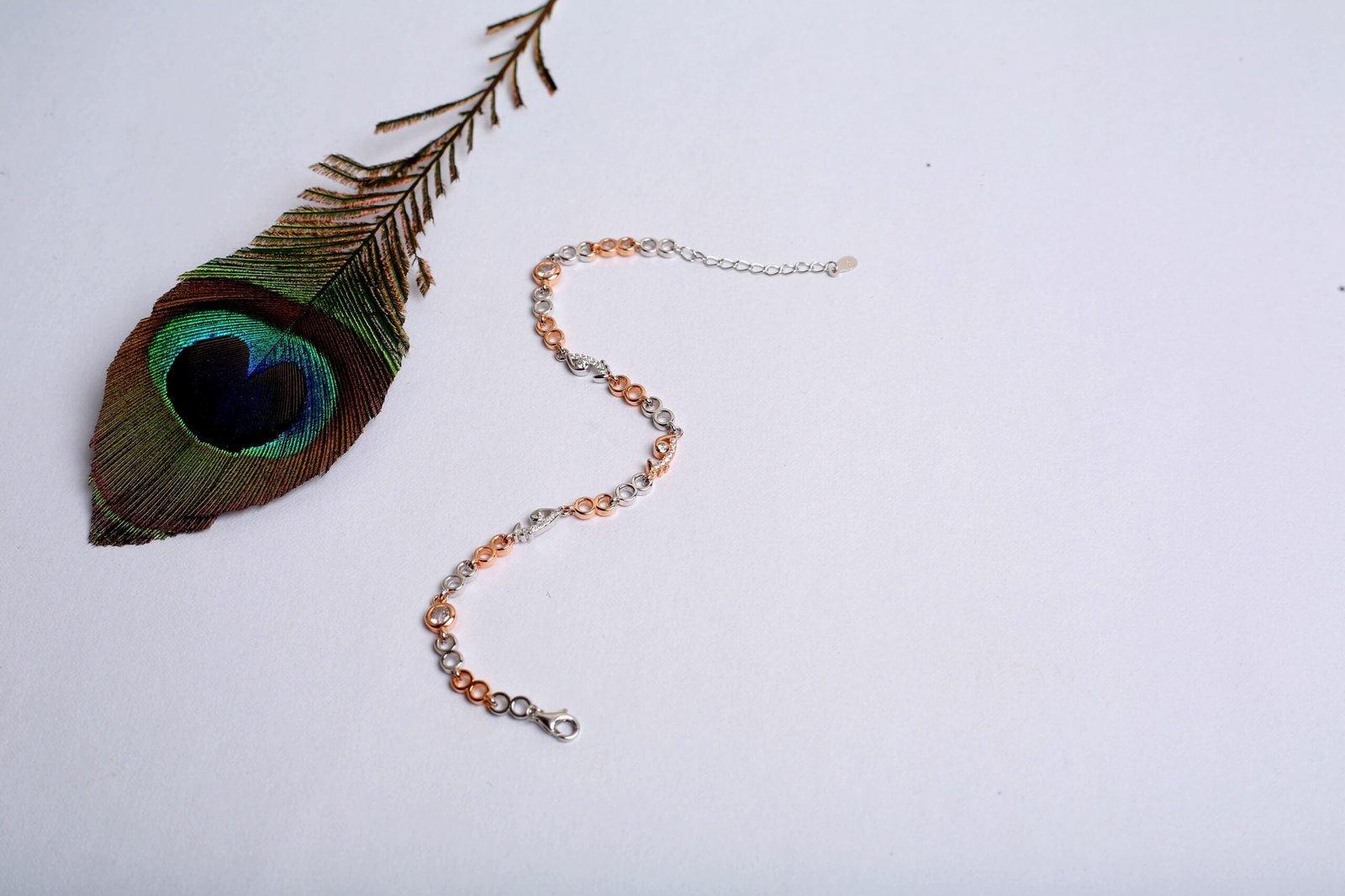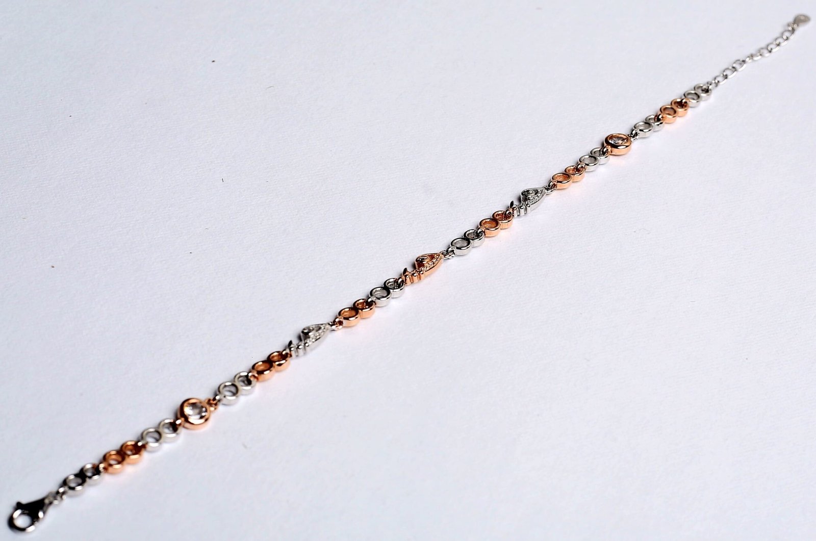 This stylish bracelet features a stunning combination of silver and rose gold polish links, enhanced with delicate heart motifs and subtle stone detailing. The dual-tone finish gives it a premium and contemporary look, making it perfect for both everyday wear and special occasions.