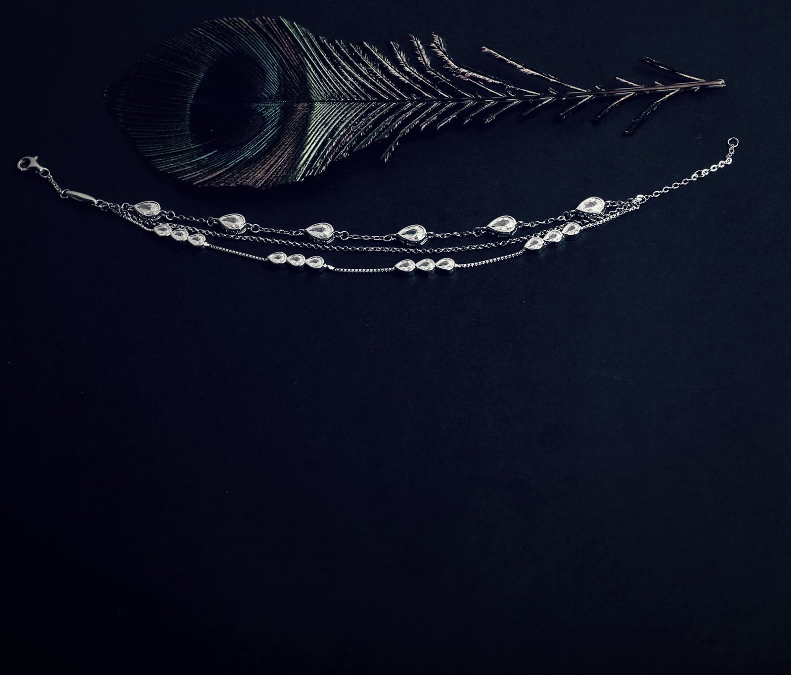 Elevate your style with the Tarakanchan Triple Layer Teardrop Crystal Bracelet, crafted in authentic 925 sterling silver.